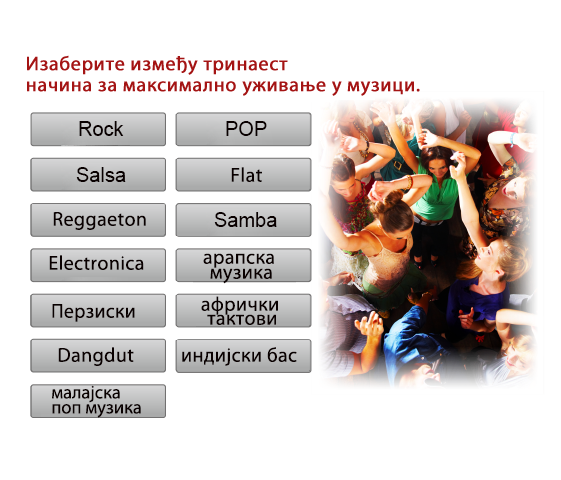 Uz široku svestranost lokalnog ekvilajzera koji je unapred podešen, možete maksimalno uživati u različitim muzičkim žanrovima.