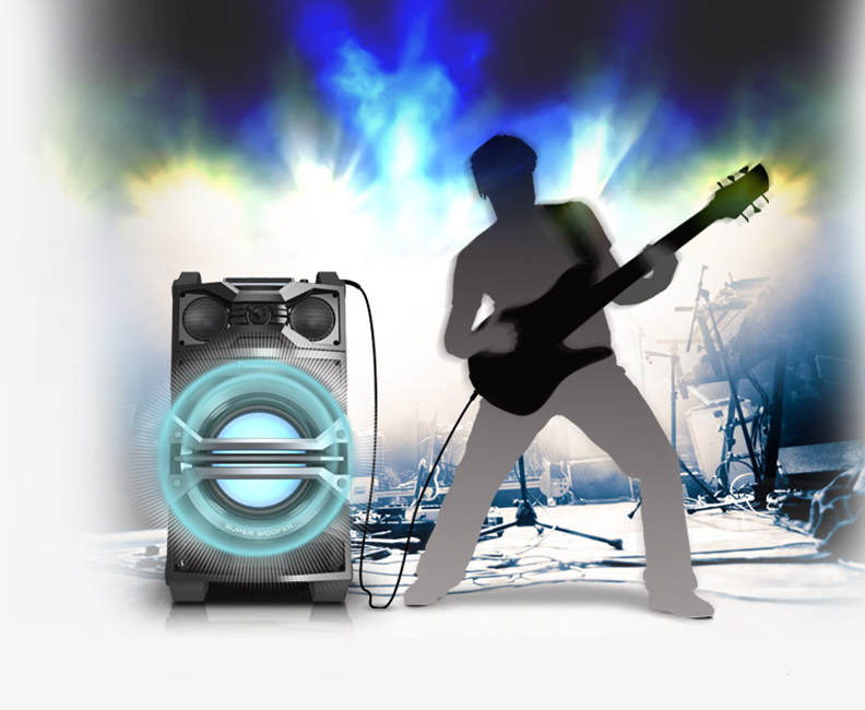 Dinamični super niskotonski zvučnil svetli u više boja što u kombinaciji sa moćnim zvukom čini da atmosfera u prostoriji bude kao u klubovima.